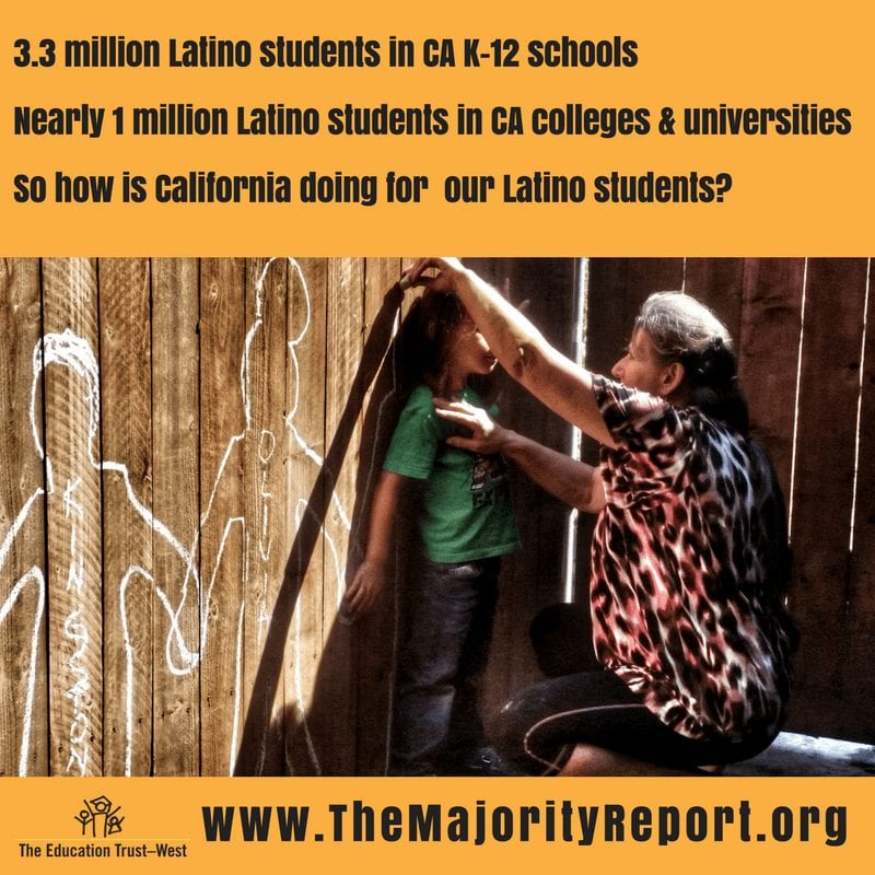 “The Majority Report: Supporting the Educational Success of Latino Students in California” provides an extensive look at how the state’s largest ethnic group is faring at every level of California’s education system. The report finds that while the over 3 million Latino students in K-12 schools are the majority of California’s 6.2 million K-12 population, and nearly 1 million Latino students are in California’s public colleges and universities, these students continue to face troubling inequities from early learning through higher education. California’s Latino students:
